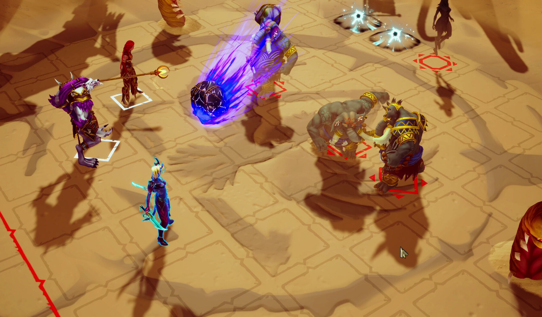 生者形态: 角色作为实体单位,拥有完整的生命值、行动点(AP)和专属技能,能移动、攻击、施放法术、控制地形,是战场上的主要执行者。
